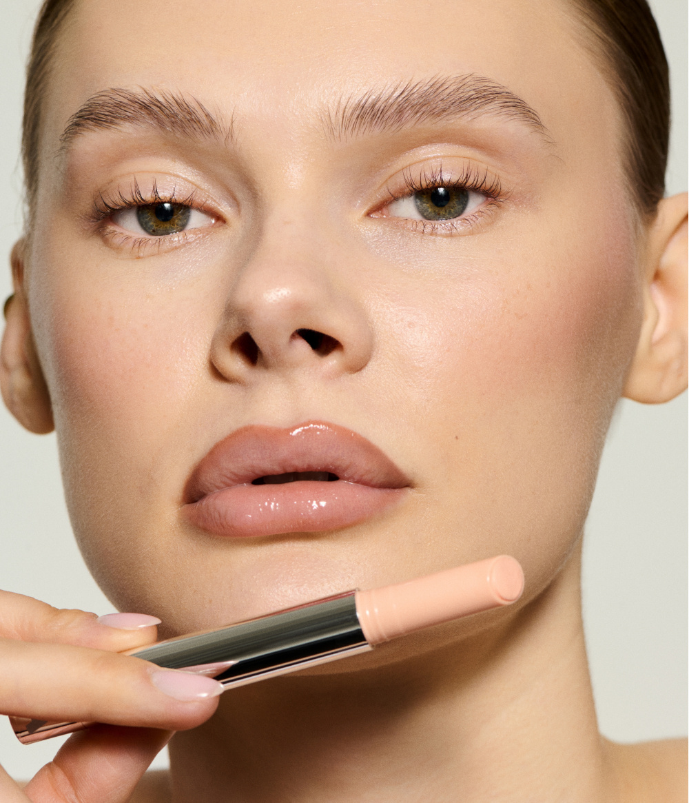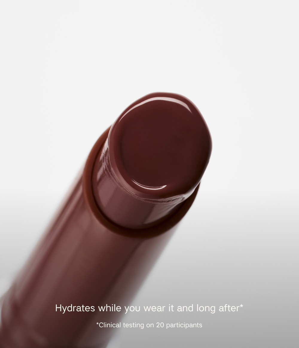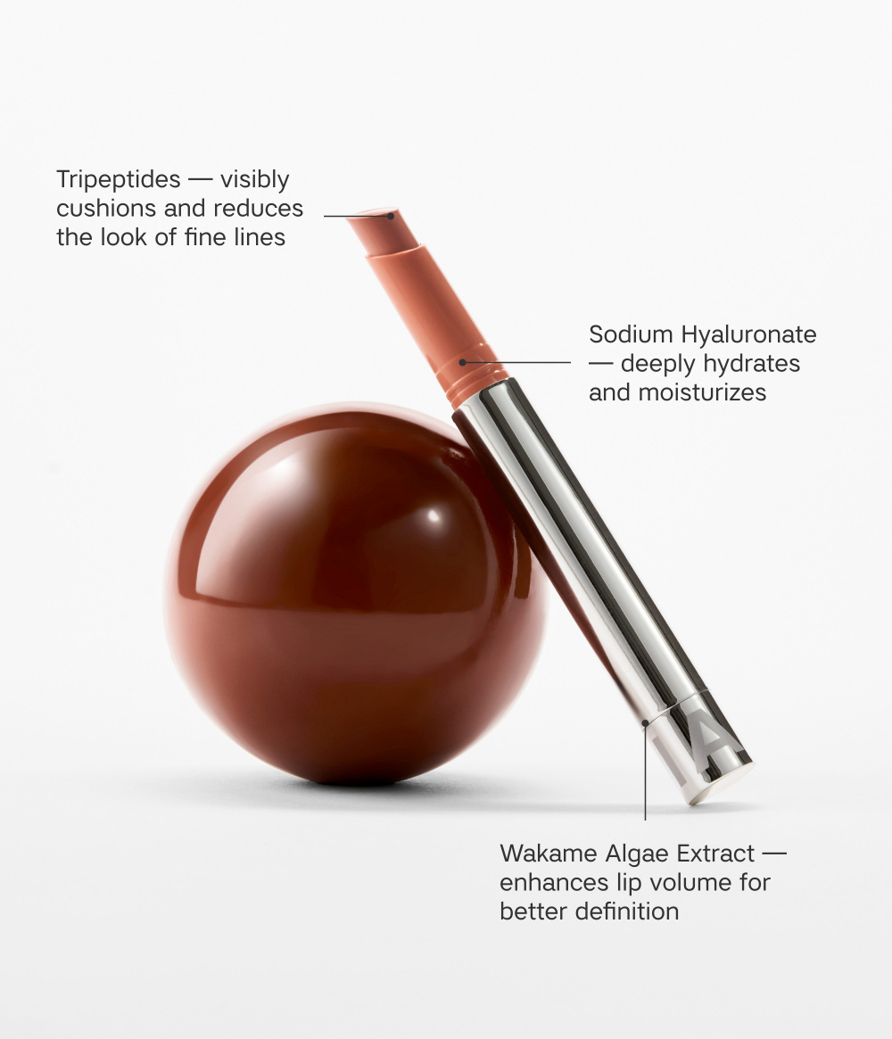 En 3-i-1-produkt för läpparna: återfuktar på djupet, jämnar ut synligt, plumpar och ger glans.
