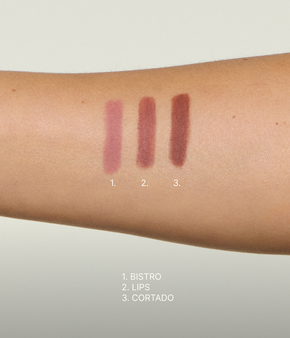 Lips: Dämpad, puderrosa nyans med neutrala undertoner