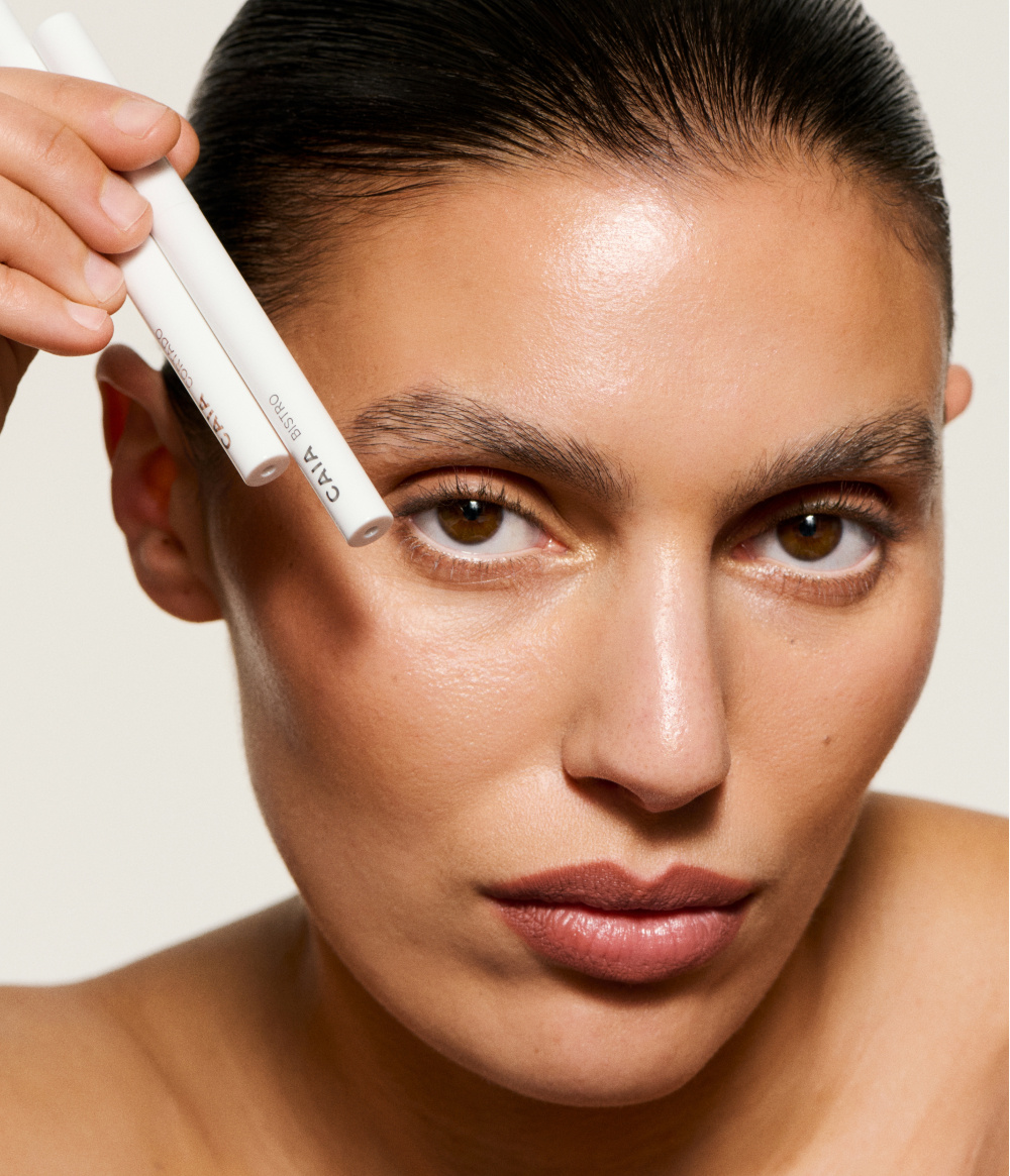 Läppennorna har en krämig, lätt formula och en hjärtformad spets för mjuk definition och enkel applicering. De två Half Moon Bags är tillverkade i mjukt strukturerat veganskt läder och öppnas brett för enkel åtkomst, hemma eller på språng.