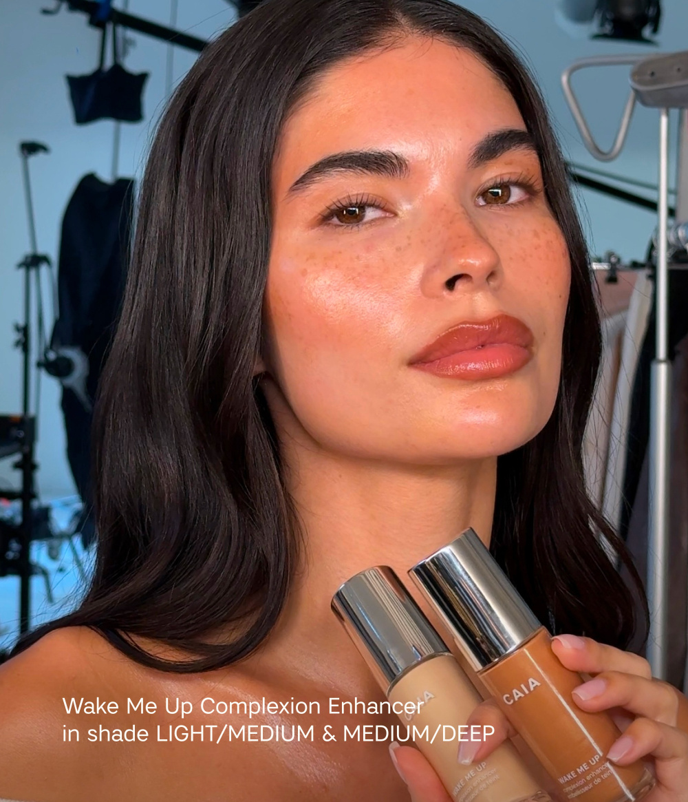 Vår bästsäljande Wake Me Up Cream och Wake Me Up Complexion Enhancer är det smidiga sättet att se omedelbart fräsch ut. Wake Me Up Cream smälter sömlöst in i huden under ögonen för att synbart ljusa upp, korrigera och neutralisera blå toner, för en mer vaken look. Tillsammans med Wake Me Up Complexion Enhancer, en lätt och multifunktionell glow-booster som återfuktar och ger mjukt ljus till hela ansiktet, ger duon en okomplicerad och strålande finish. Bär dem tillsammans som de är eller i lager under makeup för en fräsch, lystergivande hud.